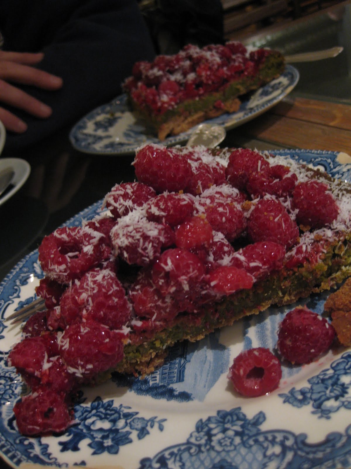 Mums med raw äppelpaj. Bottnet är gjort på malda mandlar, dadlar, kanel, muskot och honung, fyllningen består av en mixad blandning av äppel, banan, dadlar och kanel och det hela garnerat med färska äppelskivor. Jag ska nog äta det med lite av Oatlys glass!
